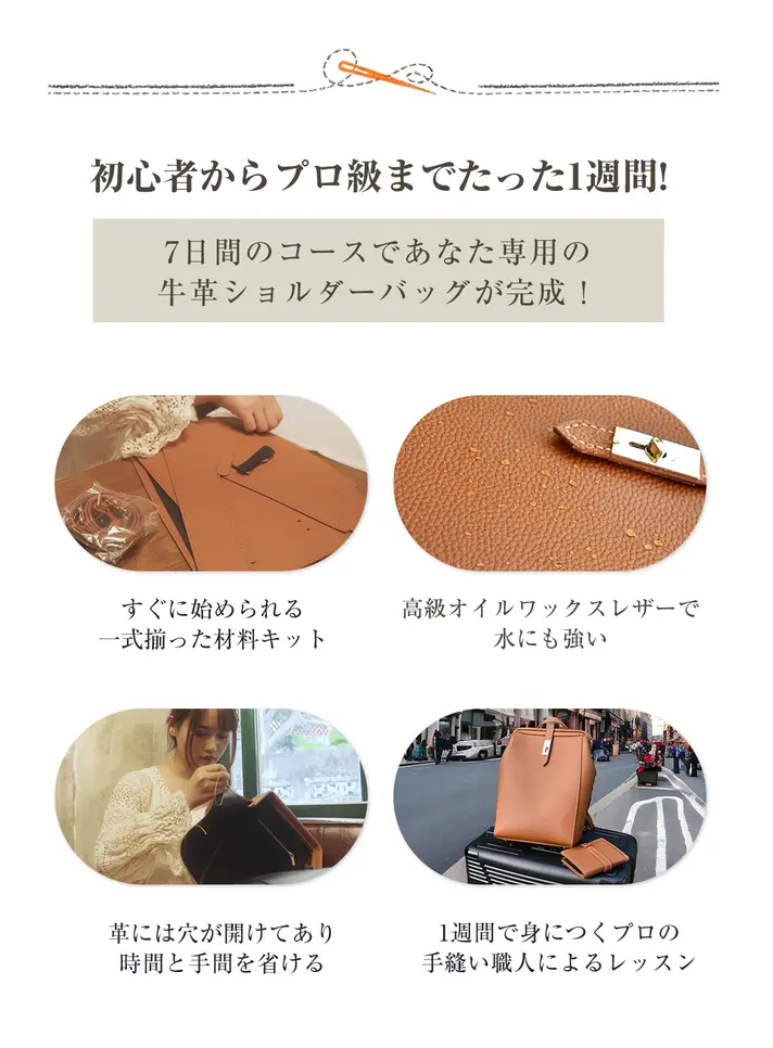 - 【初めてでも完成できる、本格レザーバッグ体験】縫製未経験でも一週間で完成を目指せる安心キット
