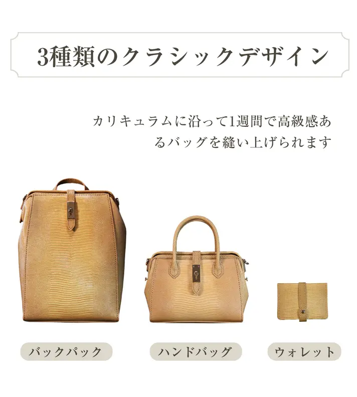 優雅なデザインと上質な質感。初心者でも自分だけのレザーバッグを気軽に縫い上げられます!