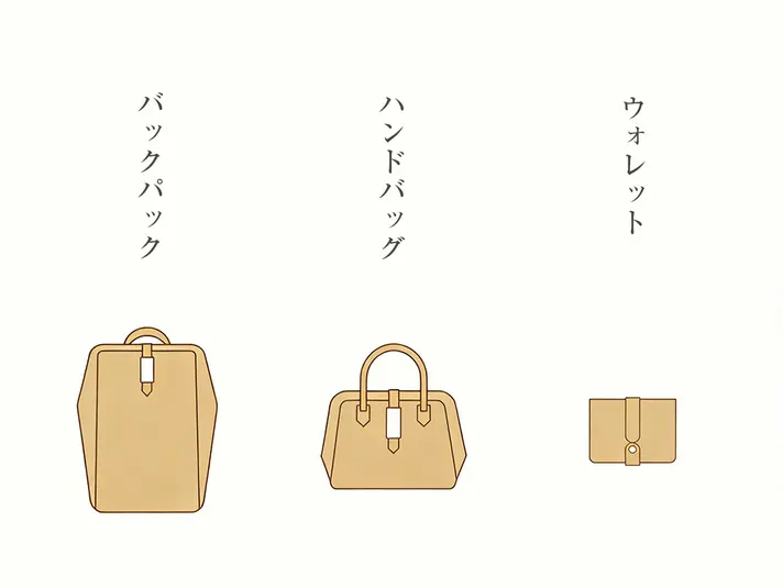 見た目はコンパクトながら十分な収納力。短期旅行に必要な化粧ポーチ、財布、スマートフォン、ハンドクリーム、ハンカチなどを整理して収められます。