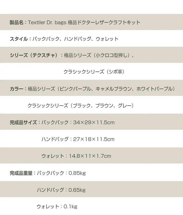 今回発売する「Textiler Dr. bags 極品ドクターレザークラフトキット」は、まったく手縫い経験がない方でも教材に沿って楽しく技術を習得でき、一針一針の縫い重ねを通してハンドメイドならではの魅力を体感。実用性と個人的な意味を兼ね備えた、自分だけのレザーバッグを手に入れることができます。