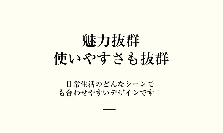 ブラック:控えめながら洗練された印象。カジュアルにもフォーマルにも合わせやすく、実用性とファッション性を兼ね備えた万能カラー。