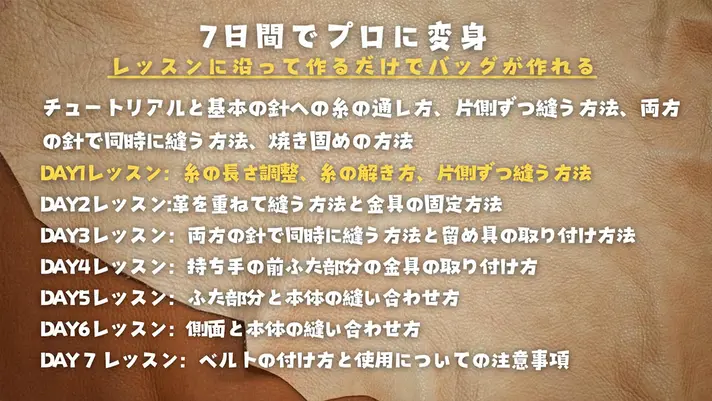 ※第1弹のTextiler 3way 英国風本革手縫いキット レッスンビデオ(内容例参考)