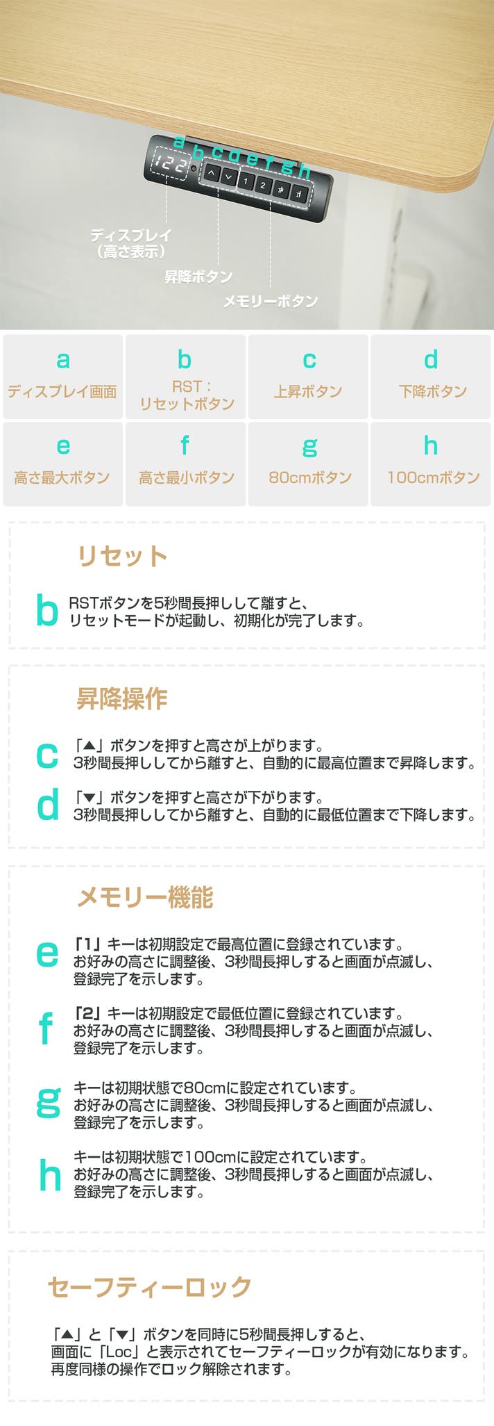 U-COOLスマート昇降デスクは、最大4パターンの高さを記憶可能。