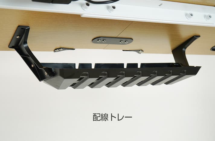 大容量の配線トレーを標準装備。電源タップやルーターもすっきり収納でき、煩雑になりがちなケーブル類をしっかり隠せます。