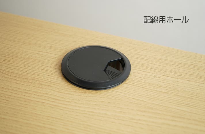 天板には丸型の配線ホールを備え、電源やデータケーブルなどのコード類をスマートに整理。デスクまわりの見た目もすっきりと保てます。