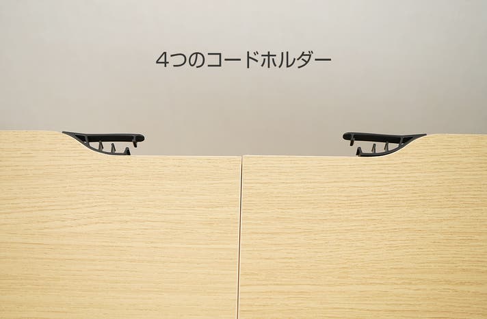 付属の4つの配線クリップで、電源・データ・LANケーブルなどをすっきりまとめて整頓。デスクまわりがごちゃつかず、気持ちよく作業に集中できます。