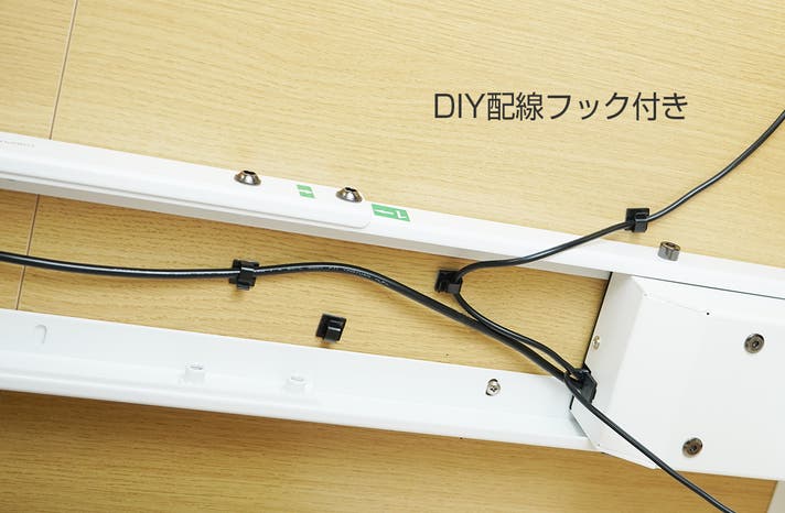 自由に貼り付けて使えるDIY用配線フックも付属。好みに合わせてレイアウトでき、配線まわりをさらにスマートに整理できます。